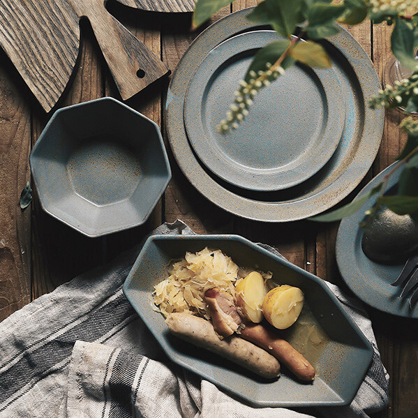 這款八角碗以稜角分明的造型展現獨特美感,搭配仿舊霧面釉質,帶出濃厚的復古氛圍